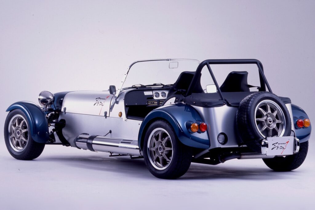光岡自動車が送り出した本格的ライトウェイトスポーツカー。外観はスーパーセブンに似るが、ボディサイズはひと回り大きくなっていた。鋼管スペースフレームにアルミ製ボディパネルを架装する手法もスーパーセブンに準じるものだったが、ゼロワンのそれはクラッシャブルゾーンを設けて衝突安全性にも配慮しつつ、車重700kg程度と軽量に仕上げられた独自のものであった。パワートレーンはユーノス ロードスター用を流用。初期に生産された99台は1.6L 直4 DOHC 120馬力を搭載していた。96年には運輸省の型式認定を受け、光岡自動車はゼロワンにより10番目の国産乗用車メーカーとして認められた。また、エンジン排気量を1.8Lへと拡大し130馬力にパワーアップするアップデートも受けた。2000年には継続生産車に新たに課される側面衝突試験に適合できないことから、惜しまれつつも生産終了となった。