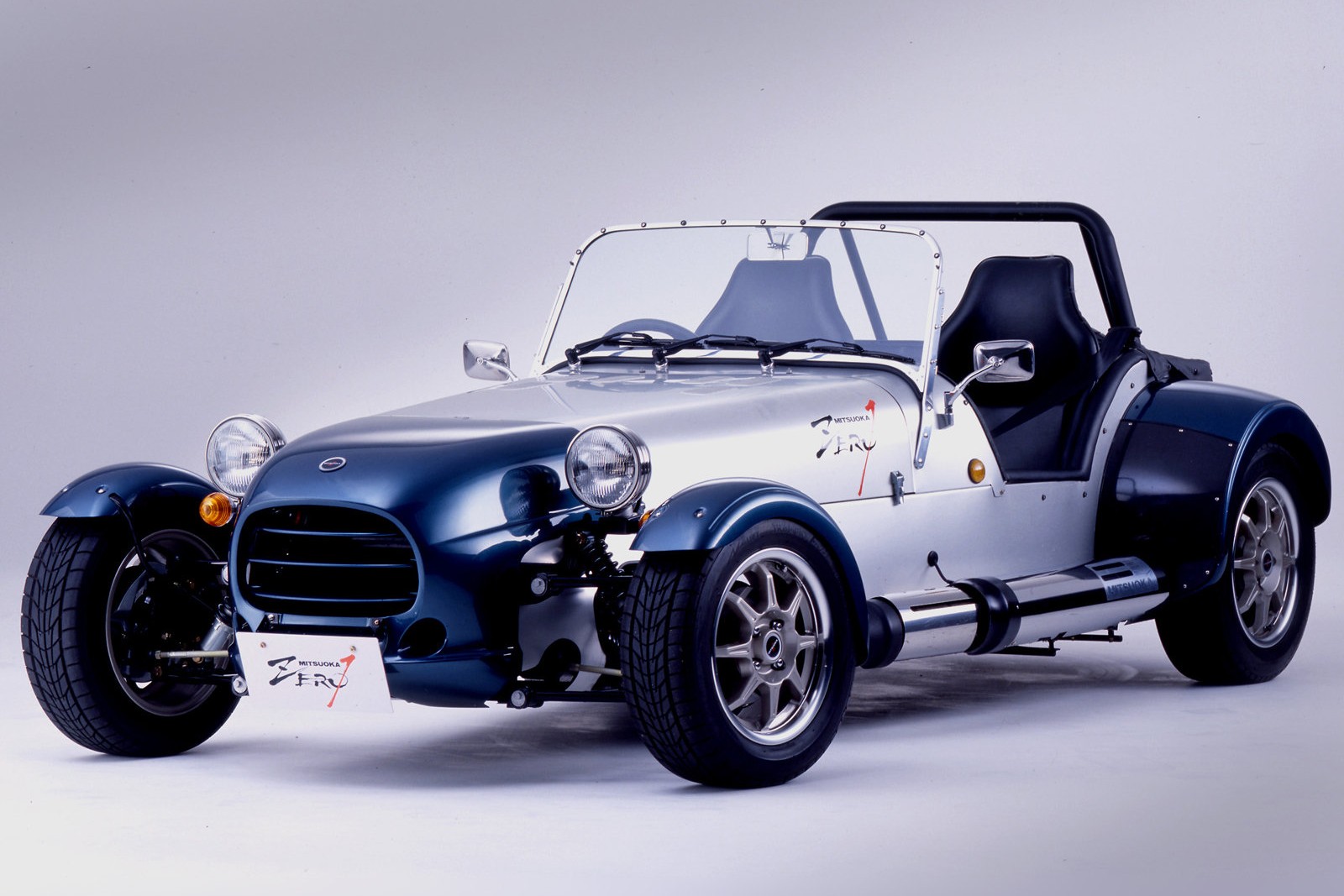 光岡自動車が送り出した本格的ライトウェイトスポーツカー。外観はスーパーセブンに似るが、ボディサイズはひと回り大きくなっていた。鋼管スペースフレームにアルミ製ボディパネルを架装する手法もスーパーセブンに準じるものだったが、ゼロワンのそれはクラッシャブルゾーンを設けて衝突安全性にも配慮しつつ、車重700kg程度と軽量に仕上げられた独自のものであった。パワートレーンはユーノス ロードスター用を流用。初期に生産された99台は1.6L 直4 DOHC 120馬力を搭載していた。96年には運輸省の型式認定を受け、光岡自動車はゼロワンにより10番目の国産乗用車メーカーとして認められた。また、エンジン排気量を1.8Lへと拡大し130馬力にパワーアップするアップデートも受けた。2000年には継続生産車に新たに課される側面衝突試験に適合できないことから、惜しまれつつも生産終了となった。