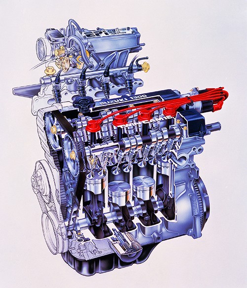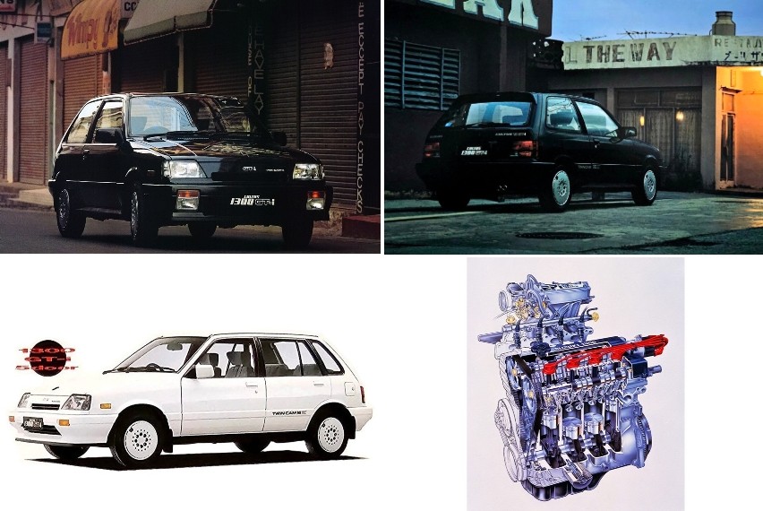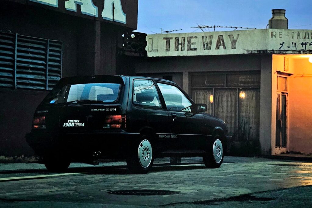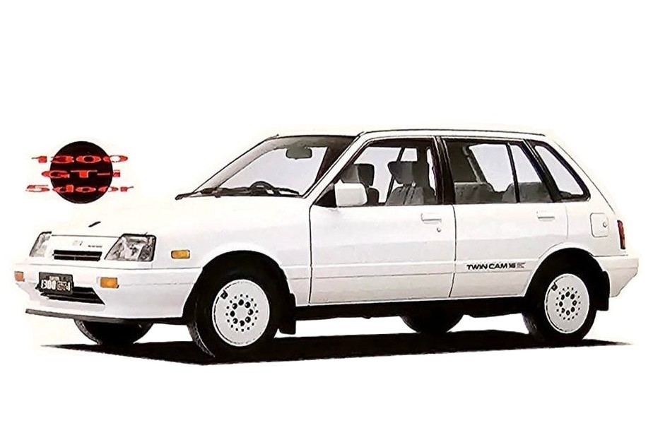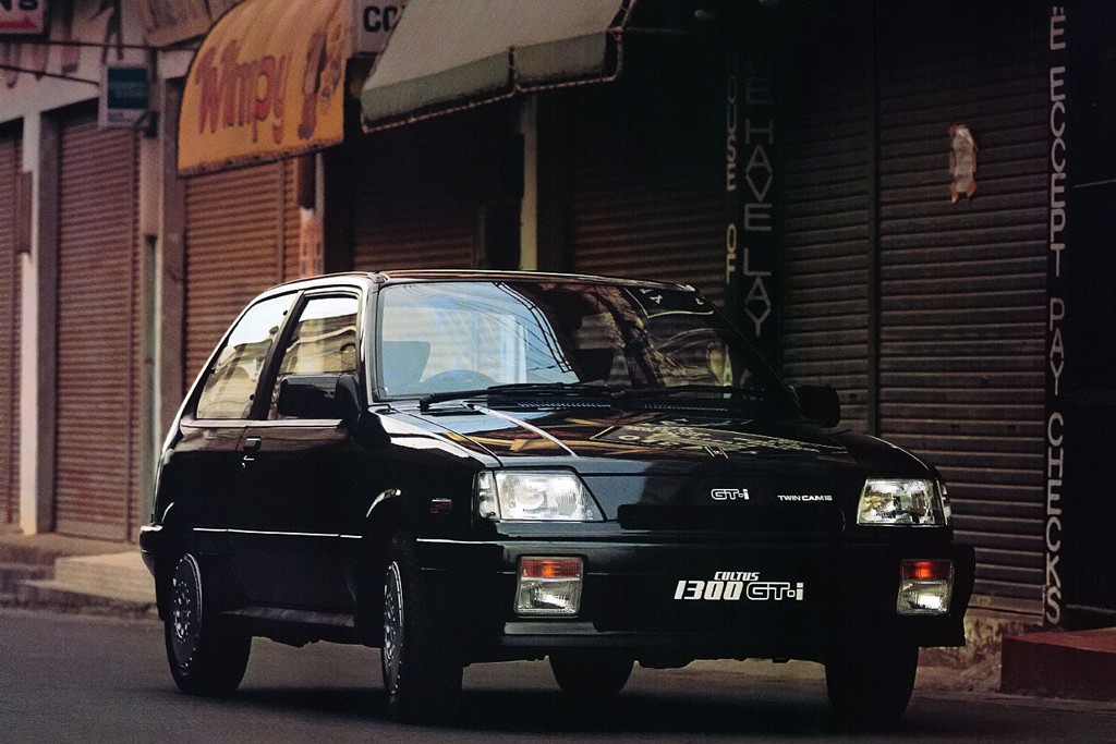 1983年にデビューしたリッターカー、初代カルタスは86年に大きなマイナーチェンジを受けた。このタイミングで追加されたのがホットなスポーツグレードのGT-iだった。最大の特徴は搭載されたG13B型の1.3L 直列4気筒 DOHC 16バルブエンジンで、オートバイのノウハウが投入されたこのエンジンは97馬力(6500rpm)、11.2kgmを発生するハイチューンながら「フルバンド・レスポンス」と形容される扱いやすさにも配慮されたものであった。また、標準モデルが1324ccだったのに対し、こちらはモータースポーツで1.3L以下クラスを狙えるようにストロークダウンをし1298ccへと変更された。さらに翌年のマイナーチェンジでは110馬力(7500rpm)までパワーアップされた。これに合わせて足回りも締め上げられ、強いねじれ剛性を持つスタビライザーを前後に装着。ブレーキは前輪にベンチレーテッドディスクとセミメタルパッドを組み合わせた。外装も標準モデルから大きな変更を受け、フロントエアダム、サイドスカート、リアスポイラーを標準装備していた。このGT-iグレードは3ドアだけではなく5ドアにも設定されていた。