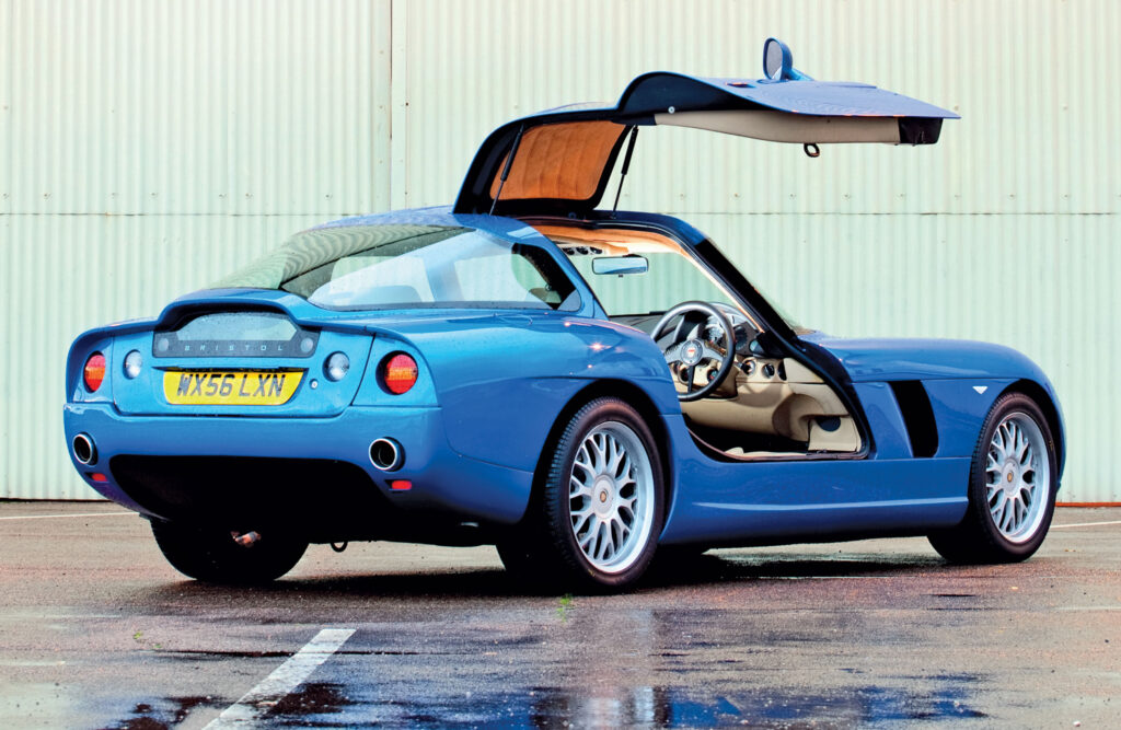 イギリス国内で根強い人気を誇る高級車メーカーであったブリストル。それはかつて航空機産業で有数の技術力を持つ技術者集団でもあった。そんな背景を持つブリストルが第一次世界大戦中に活躍した戦闘機の名前を付けてリリースしたスポーツカーが「ファイター」であった。シャシーは頑強な鋼板製のボックスフレームに、パイプフレームのロールケージを組み合わせ、フロア部分はアルミハニカム構造となっていた。エンジンはダッジ バイパー用の8.0L V10 OHVを525馬力までチューニングして、これをフロントミドに搭載。最高速度は340km/hを誇り、また前後重量配分は48:52と優れる。さらに高性能版のファイターSでは、628馬力へとパワーアップされていた。サスペンションは前後ダブルウィッシュボーンであり、ブレーキはフロント6ポット、リア4ポットの対向ピストンキャリパーを備えた強力なもの。これまでのブリストルらしさを損なわない独特なデザインのボディはアルミニウム製、ガルウイングドアとテールゲートはカーボン製と軽量素材を使用していた。