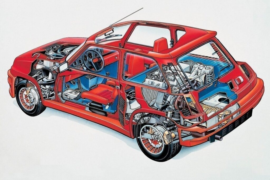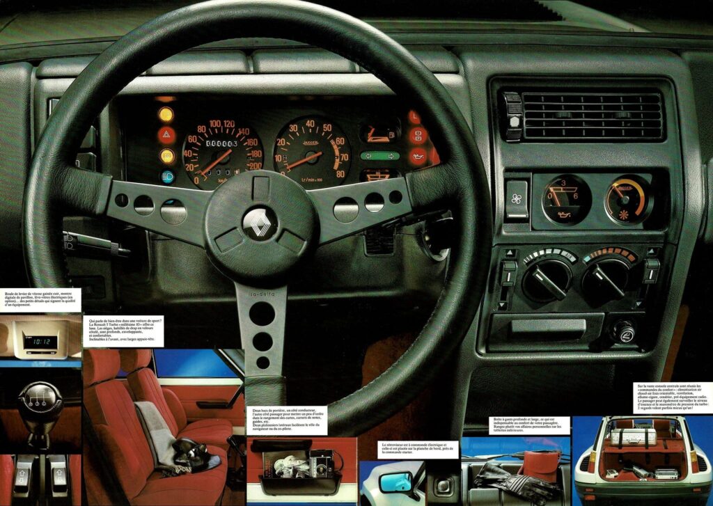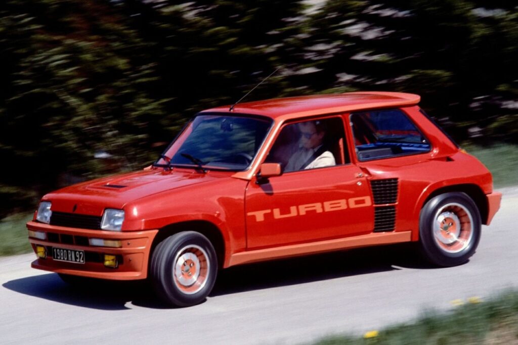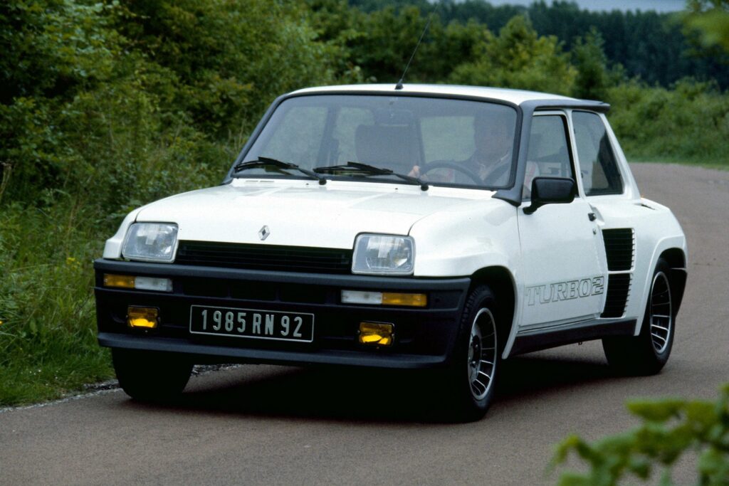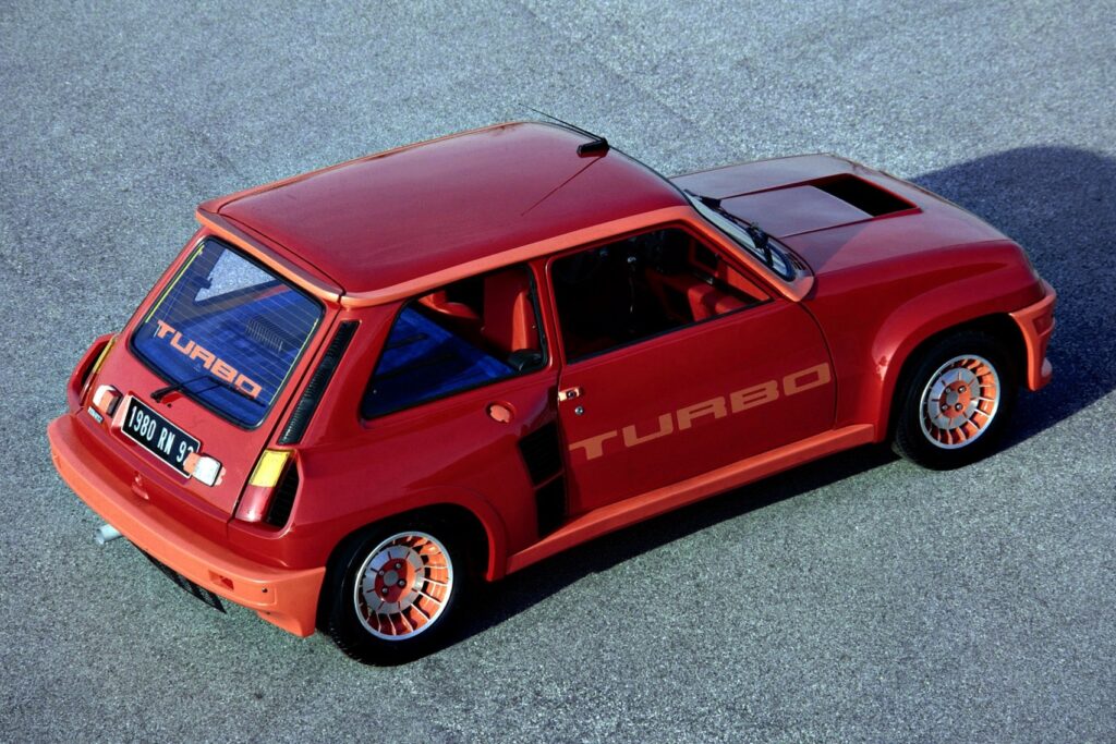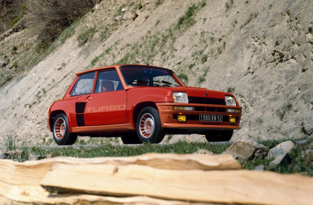 ルノーがWRCでの勝利を目指して開発したラリーウエポンが5(サンク)ターボ。大衆車である5をベースとしていたが、その基本骨格は流用しつつも、パワートレーンをリアに移設したミドシップレイアウトを採用していた。縦置きされるエンジンは1.4Lの直4 OHVにギャレットT3タービンとインタークーラーを組み合わせ、160馬力、21.4kgmを発生。これにルノー30用の5速マニュアルトランスミッションを180°反転して組み合わせた。ボディスタイルは、大きく広げられた前後トレッドに合わせた強烈なオーバーフェンダーが特徴で、特にリアは大きなエアインレットも備える過激なスタイルとなっており、リアサスペンションはA310 V6のものを流用していた。また、軽量化のためにルーフ、ドア、リアハッチはアルミ製に置き換えられており、その車重は970kgに抑えられていた。グループ4カテゴリー用のホモロゲーションを満たすため、目標生産台数はわずか400台であり、少数生産が故に非常に高価であった。このため、内装には特別なデザインと高品質な素材が使用されていた。しかし、5ターボは想定以上の人気を博し、1800台以上を生産。のちにアルミ製部品をスチール製とし、内装を標準の5と共用としてコストを抑えた5ターボ2が追加で3000台以上も生産された。