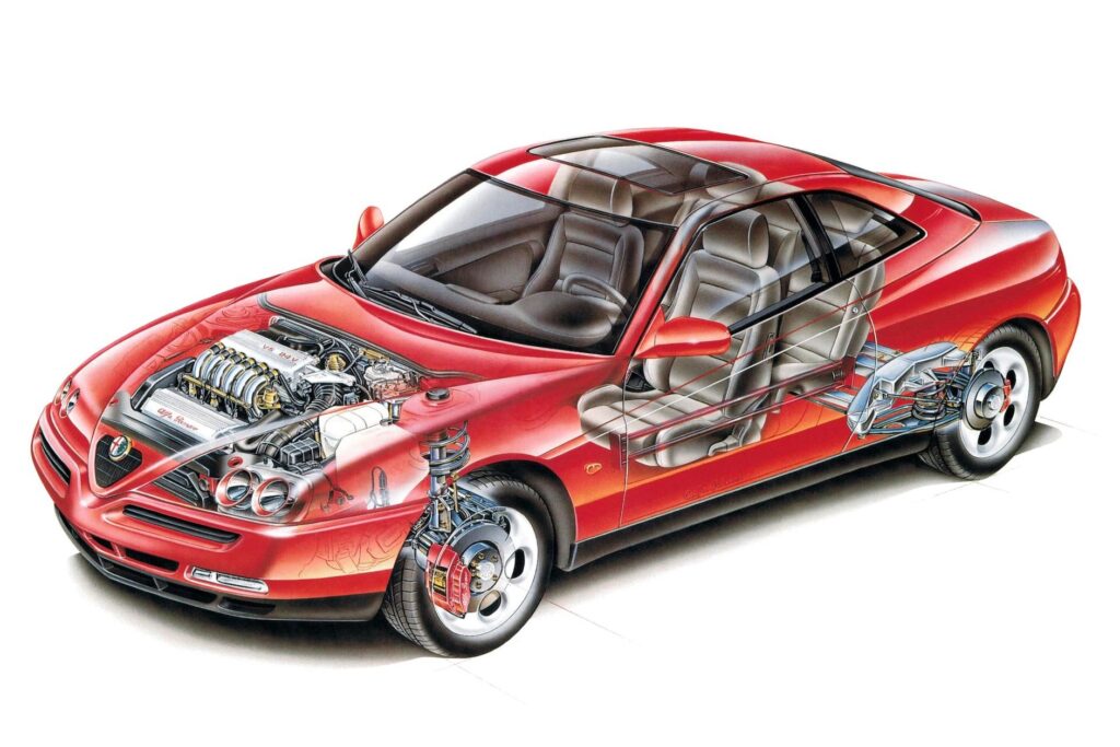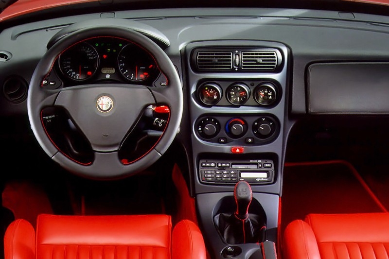 車両重量はモデルにより1,350kgから1,420kgで、実用的な2+2のレイアウトを持ちつつも、純粋なドライビングの愉しさを追求したパッケージングとなっている。1990年代のアルファロメオにおいて、大胆な意匠と高度なサスペンション理論を融合させた、ブランド再生を象徴する一台である。