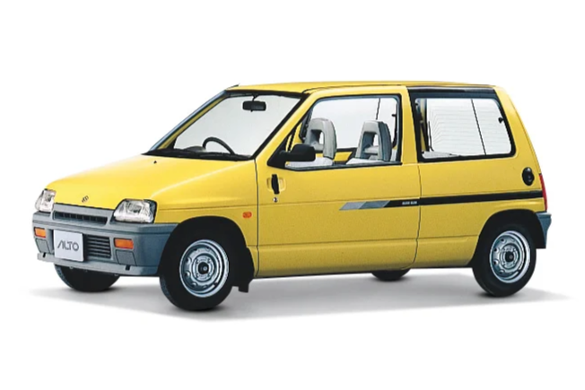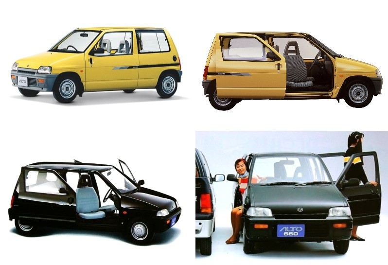 1988年9月、3代目アルトのフルモデルチェンジと同時に設定されたモデルである。狭い場所での利便性や高齢者の乗降性を重視し、ドア全体が外側にせり出してから移動する「スライドスリムドア」を採用したパッケージングが最大の特徴である。