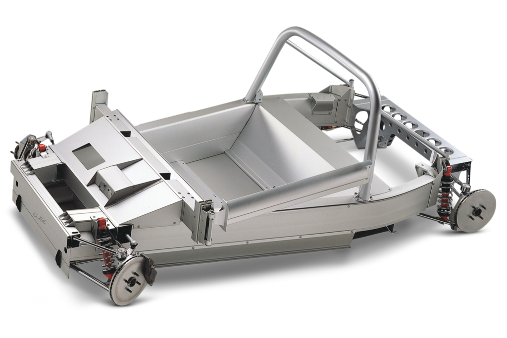 最大の特徴は、接着剤による接合を用いたアルミ押し出し材のバスタブ型シャシーにある。ハイドロ・アルミニウム社と共同開発されたこの構造は、エポキシ樹脂によって航空機のように部材を接着しており、軽量化と高いねじり剛性を両立した。外装にはFRP製のボディパネルが採用され、車両重量は初期モデルで約690kgという異例の軽さを実現している。