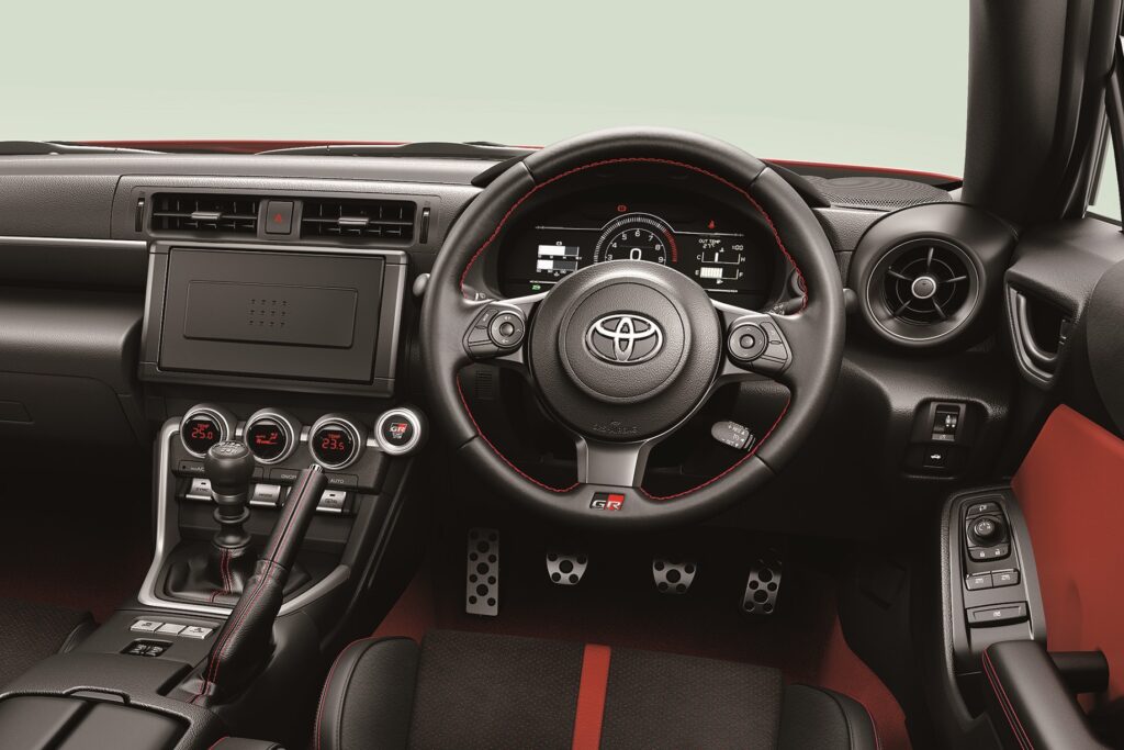 室内空間は、水平基調のインストルメントパネルと低く抑えられたヒップポイントにより、スポーツ走行に集中できる環境が整えられている。7インチTFT液晶を採用したデジタルメーターは、トラックモード時に回転計を大きく表示するなど、実戦的な視認性を確保。安全面では、当初AT車のみであった運転支援システム「アイサイト」が、2023年の改良でMT車にも専用設計された上で標準装備となり、現代のスポーツカーに相応しい安全性能を両立した。2020年代において、純粋な内燃機関とFRレイアウトを愉しめる希少なモデルとして、世界中で高い評価を得ている。