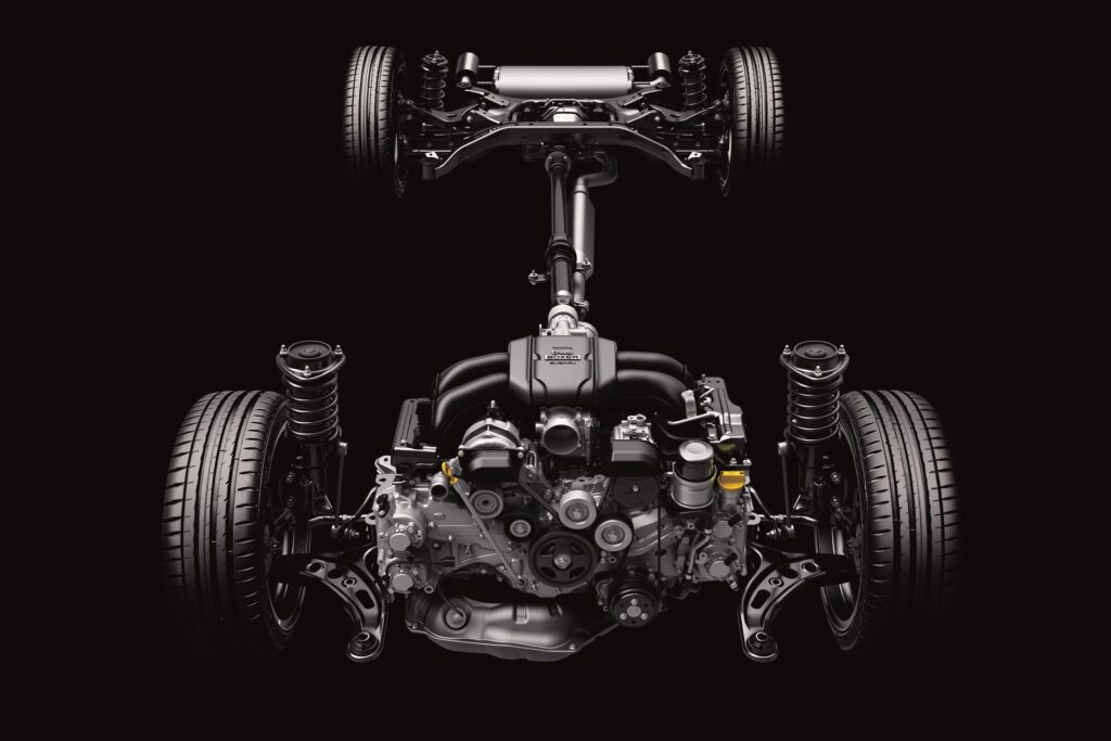 最大の進化点は、パワーユニットの排気量拡大である。搭載される水平対向4気筒エンジン(FA24型)は、排気量を従来の2.0Lから2.4Lへと引き上げられた。これにより最高出力は235馬力/7,000rpm、最大トルクは25.5kgm/3,700rpmへと向上。特に先代で課題とされていた中回転域のトルクの落ち込みが解消され、低速域から力強く、かつ高回転までスムーズに吹け上がる加速特性を実現した。トランスミッションは、クロスレシオの6速MTと、パドルシフトを備えた6速ATが設定されている。