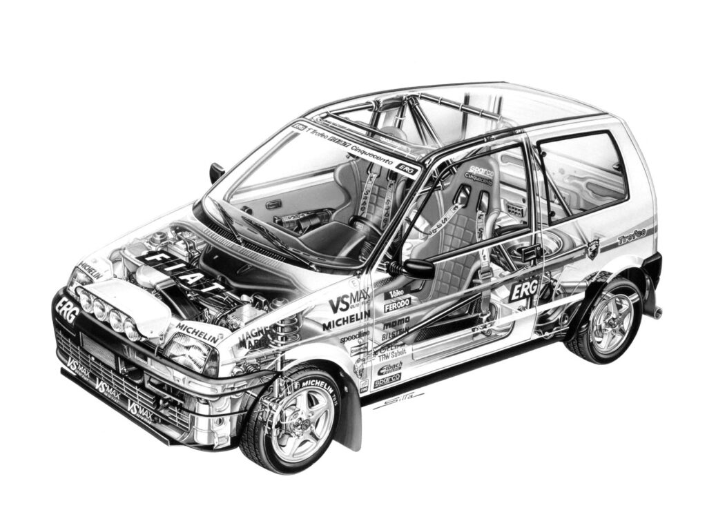 1993年に登場したチンクエチェント トロフェオは、同年から開始されたワンメイクラリー競技のベース車両として開発された。当時のフィアットが若手ドライバーの育成を目的に創設したこのシリーズは、アバルトが用意した専用のキットを装着することで安価かつ本格的な競技参入を可能にした。イタリア国内のみならず欧州各地で展開され、総合成績だけではなく、21歳以下や女性ドライバーといった独自ランキングを設けることで、多様な才能の発掘を目指したプロモーション戦略の一環でもあった。